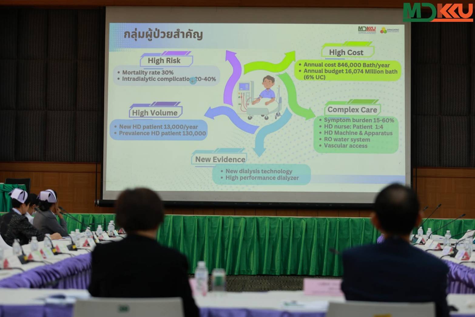 คณะแพทยศาสตร์ มหาวิทยาลัยขอนแก่น นำโดย ศ.นพ.สมศักดิ์ เทียมเก่า ผู้อำนวยการโรงพยาบาลศรีนครินทร์ พร้อมผู้บริหาร คณาจารย์ ร่วมต้อนรับผู้เยี่ยมสำรวจจากสถาบันรับรองคุณภาพสถานพยาบาล (องค์การมหาชน) เพื่อต่ออายุการพัฒนาคุณภาพสถานพยาบาลเฉพาะโรคหรือเฉพาะระบบการดูแลผู้ป่วยโรคไตวายเรื้อรังที่ได้รับการบำบัดทดแทนไต โดยการฟอกเลือดด้วยเครื่องไตเทียม โรงพยาบาลศรีนครินทร์ ณ ห้องประชุมมิตรภาพ ชั้น 3 อาคารเรียนรวม